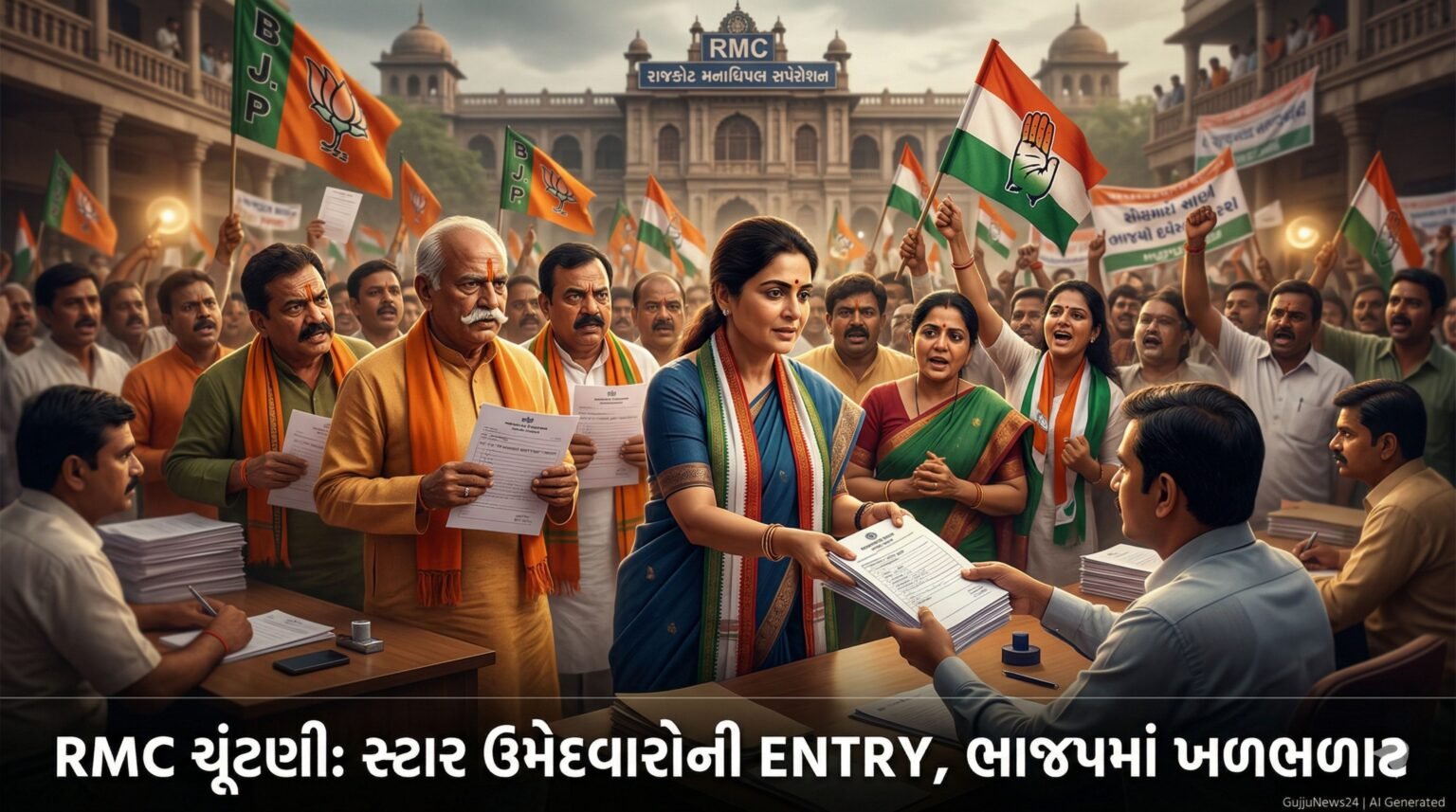 રાજકોટ મહાનગરપાલિકા ચૂંટણી 2026: ઉમેદવારી ફોર્મ ભરવાનો ધમધમાટ અને રાજકીય હડકંપ રાજકોટ, ગુજરાત — રાજકોટ મહાનગરપાલિકા (Rajkot Municipal Corporation - RMC) ચૂંટણી 2026ને લઈને શહેરનો રાજકીય માહોલ ચરમસીમાએ પહોંચી ગયો…