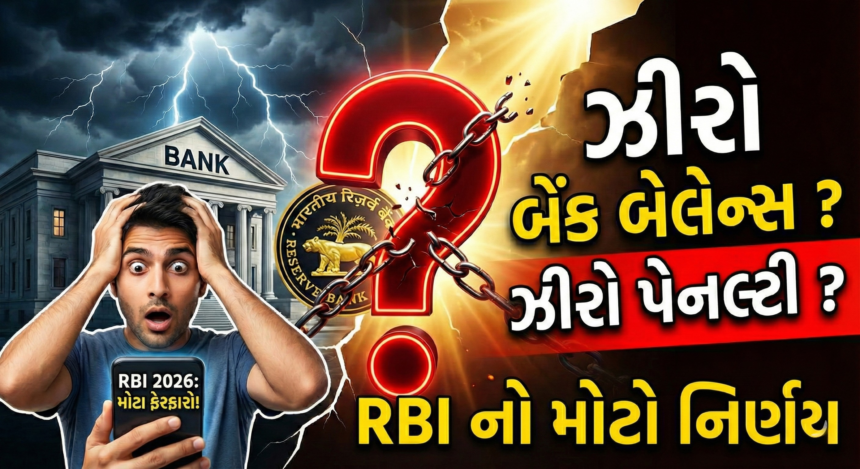 Reserve Bank of India (RBI) એ વર્ષ 2026 માટે બેન્કિંગ ક્ષેત્રે મોટા ફેરફારો જાહેર કર્યા છે. જો તમારું પણ બેંકમાં Savings Account છે, તો આ સમાચાર તમારા માટે ખૂબ જ મહત્વના છે. RBI ની નવી ગાઈડલાઈન મુજબ, હવે બેંકો ગ્રાહકો પાસેથી મનમાની રીતે Penalty Charges વસૂલી શકશે નહીં. ખાસ કરીને Minimum Balance અને Zero Balance Accounts ને લઈને ગ્રાહકોને મોટી રાહત આપવામાં આવી છે.