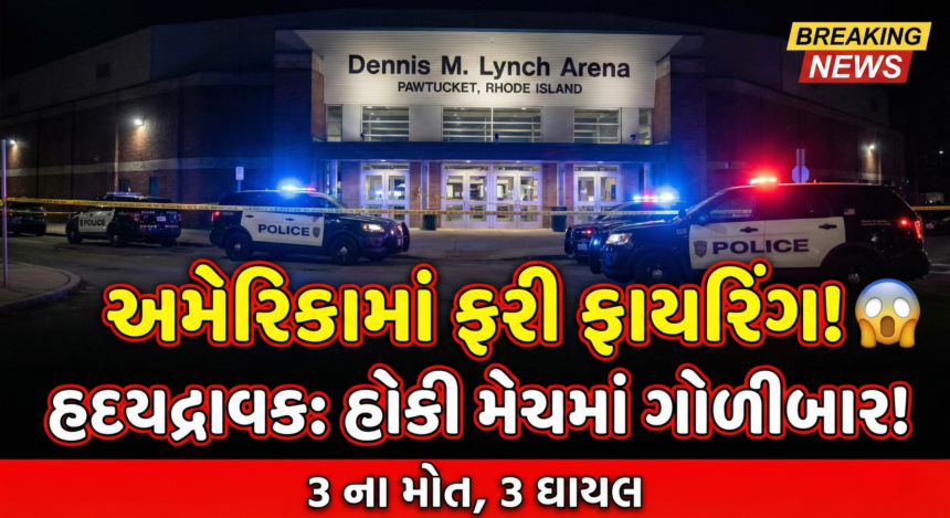 ઘટનાની વિગત (The Incident Details) આ ગોળીબાર Pawtucket ના Dennis M. Lynch Arena માં સોમવારે બપોરે લગભગ 2:30 વાગ્યે થયો હતો. તે સમયે ત્યાં અલગ-અલગ સ્કૂલો વચ્ચે Boys’ Hockey Game ચાલી રહી હતી અને ‘Senior Night’ હોવાથી મોટી સંખ્યામાં Students અને Parents હાજર હતા. પોલીસના જણાવ્યા અનુસાર, શૂટરે પોતાની જ ફેમિલીને ટાર્ગેટ કરી હતી.