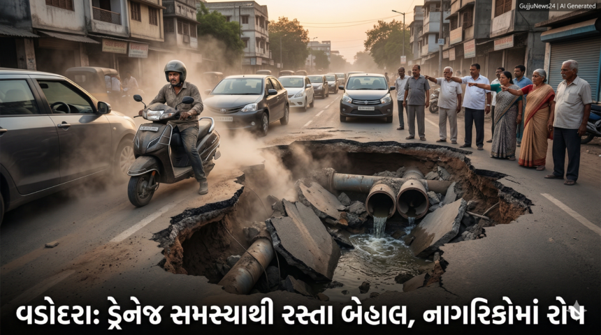 વડોદરામાં જર્જરિત ડ્રેનેજ સિસ્ટમથી રોડ-રસ્તાઓ બેહાલ: Nagarikો પરેશાન