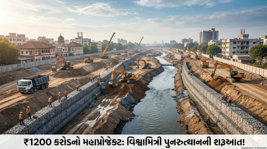 વડોદરા, ગુજરાત: સંસ્કારી નગરી વડોદરાની ઓળખ સમાન અને શહેરની જીવાદોરી ગણાતી વિશ્વામિત્રી નદીના (Vishwamitri River) પુનરુત્થાન અને સંરક્ષણ માટે ચાલી રહેલા ઐતિહાસિક પ્રોજેક્ટનો (Vishwamitri River Rejuvenation Project) વધુ એક નિર્ણાયક તબક્કો ગતિ પકડી રહ્યો છે. આશરે ₹1200 કરોડના (1200 Crore Project) મહત્વાકાંક્ષી પ્રોજેક્ટ હેઠળ નદીને ઊંડી અને પહોળી કરવાની, કિનારાઓને મજબૂત બનાવવાની અને પાણીની વહન ક્ષમતા વધારવાની કામગીરી પૂરજોશમાં ચાલી રહી છે. 10 એપ્રિલ, 2026 (April 10, 2026) ના રોજ, જ્યારે શહેરના નાગરિકો આગામી ચોમાસાની ચિંતા કરી રહ્યા છે, ત્યારે આ પ્રોજેક્ટની પ્રગતિ અને તેના ભવિષ્ય અંગે વ્યાપક ચર્ચા જોવા મળી રહી છે.