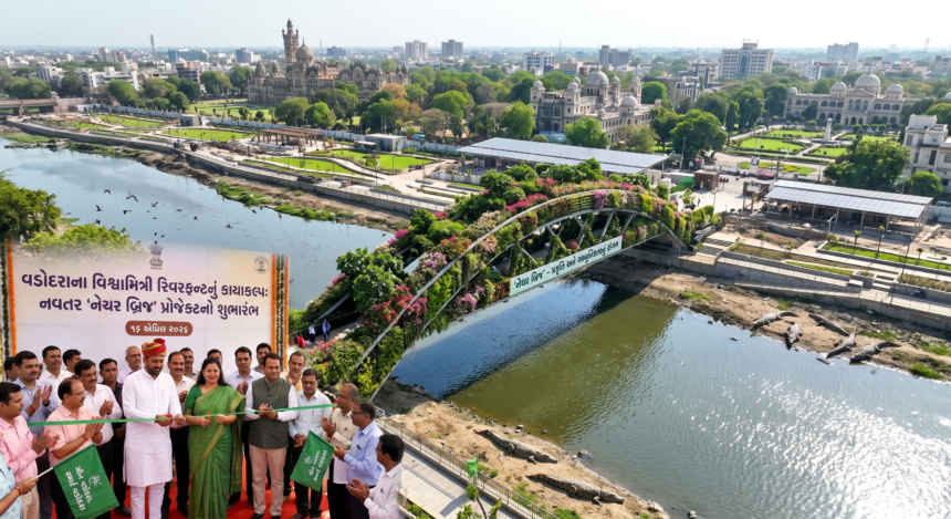 વડોદરા, ૧૬ એપ્રિલ ૨૦૨૬: વડોદરા શહેરના વિકાસ અને પર્યાવરણ સંરક્ષણ માટે એક ઐતિહાસિક પગલું ભરવામાં આવ્યું છે. આજે, ૧૬ એપ્રિલ ૨૦૨૬ના રોજ, વિશ્વામિત્રી રિવરફ્રન્ટ રિજુવેનેશન પ્રોજેક્ટ (Vishwamitri Riverfront Rejuvenation Project) અંતર્ગત ‘નેચર બ્રિજ’ સહિતના પ્રથમ તબક્કાનો શુભારંભ કરવામાં આવ્યો છે. આ પ્રોજેક્ટ વડોદરાના નાગરિકો માટે એક નવી આશાનું કિરણ લઈને આવ્યો છે, જે શહેરના હૃદયમાંથી પસાર થતી વિશ્વામિત્રી નદીને નવજીવન આપશે અને તેને એક આધુનિક, લીલાછમ અને સામાજિક પ્રવૃત્તિઓનું કેન્દ્ર બનાવશે. આ પહેલથી વડોદરા એક ગ્રીન સિટી (Green City) અને સ્માર્ટ સિટી (Smart City) તરીકેની તેની ઓળખને વધુ મજબૂત બનાવશે.